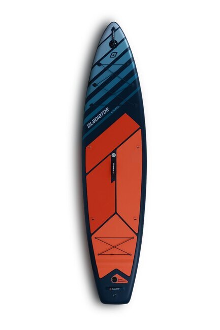 Gladiator Pro 11’4 подойдёт для тех, кто ценит скорость, манёвренность и стабильность на воде. Модель позволяет быстро преодолевать большие расстояния и станет отличным выбором для комфортного путешествия. На SUP-борде есть металлические 4D кольца для крепления сиденья, карго-сетка сзади и спереди с шестью точками фиксации багажа, киктейл расположен над плавником для лучшего контроля доски, а на носовой ручке установлено крепление M6 для камеры, GPS или трекера. В коллекции 2026 добавлен фирменный знак над ручкой, позволяющий избежать подделок.
